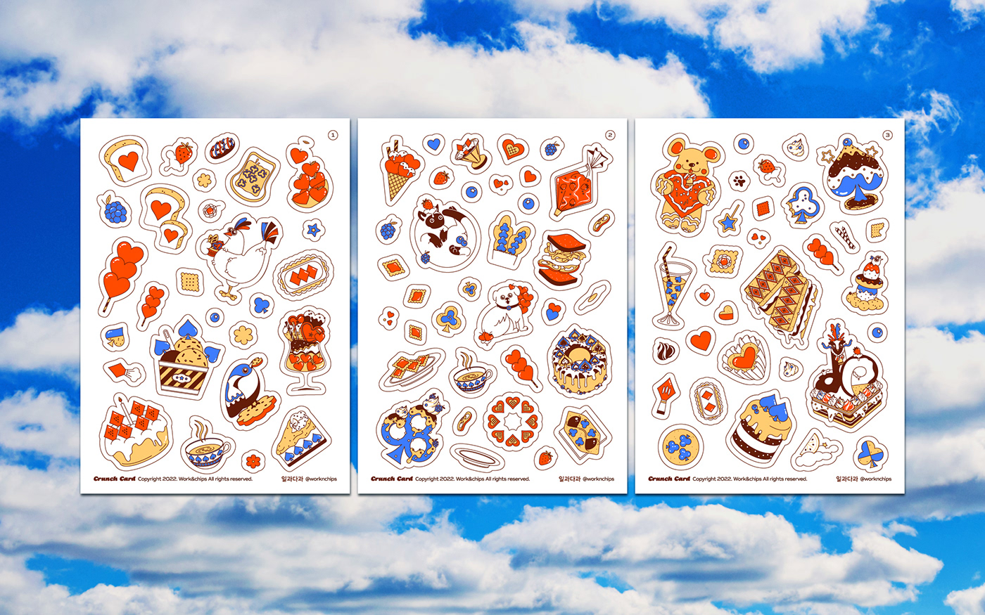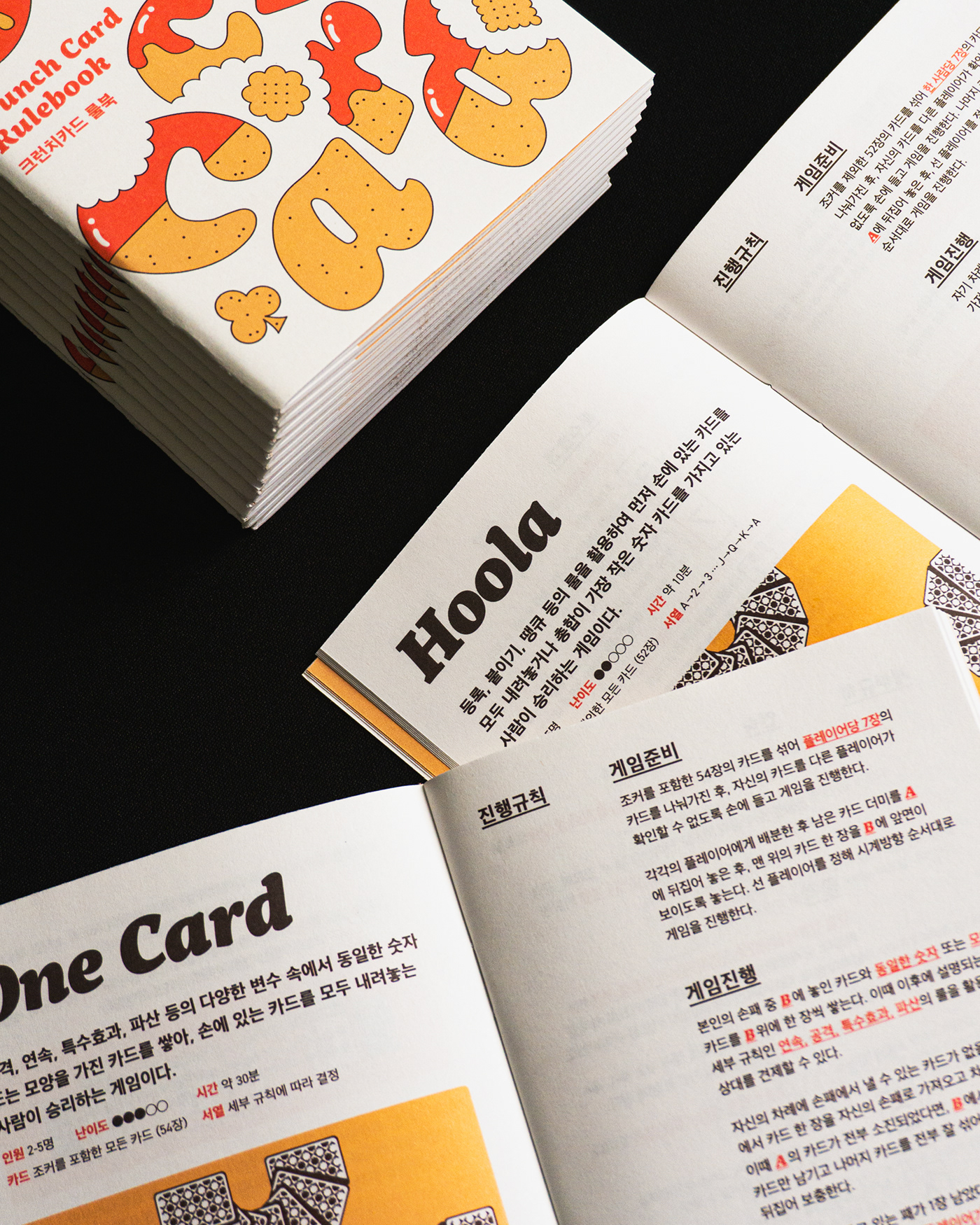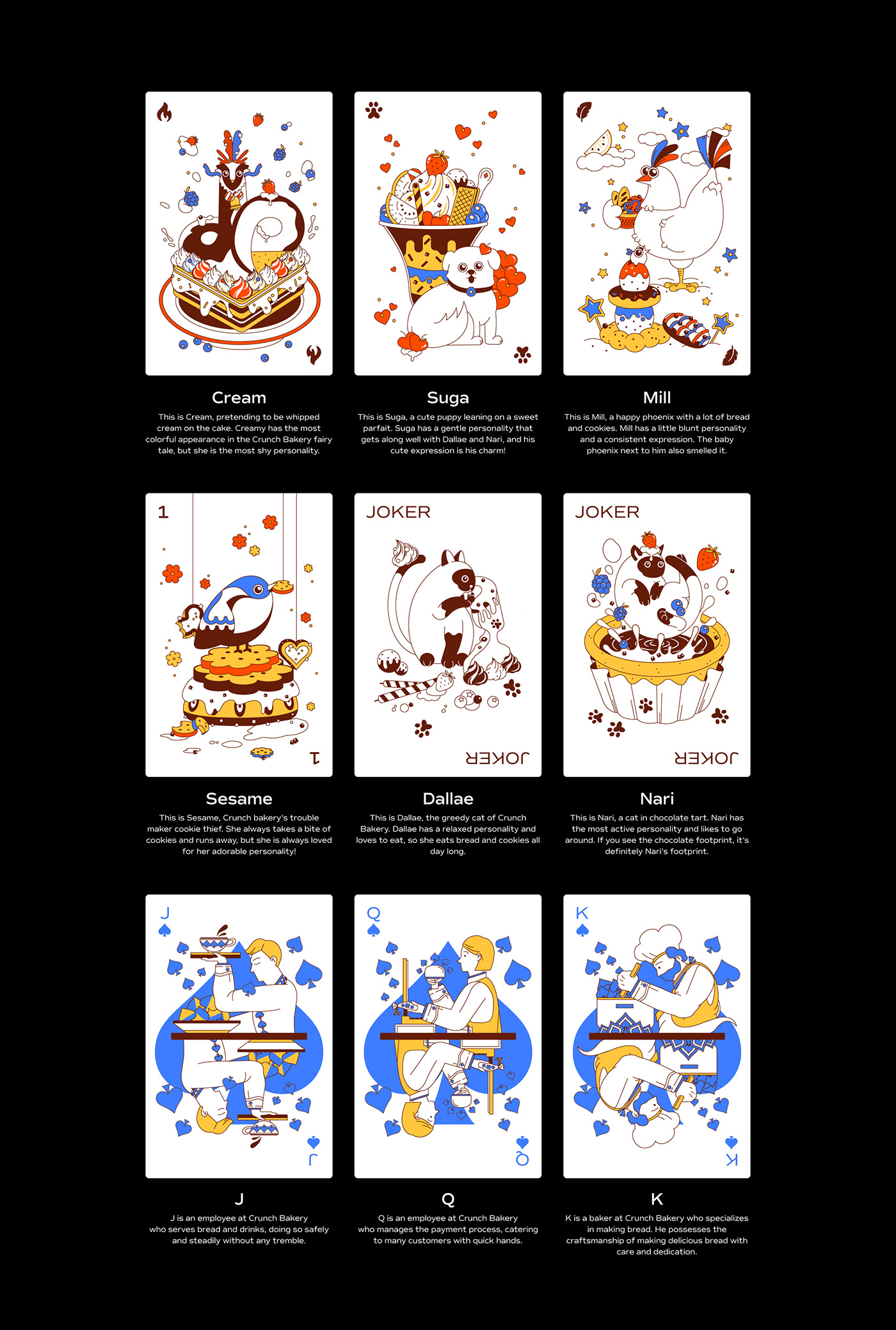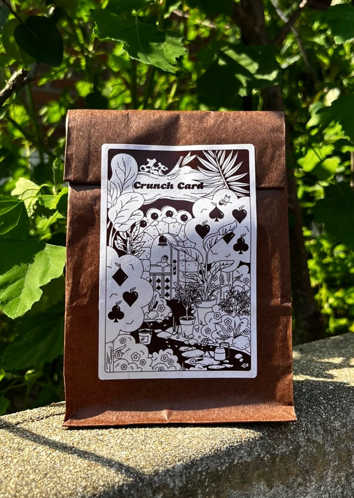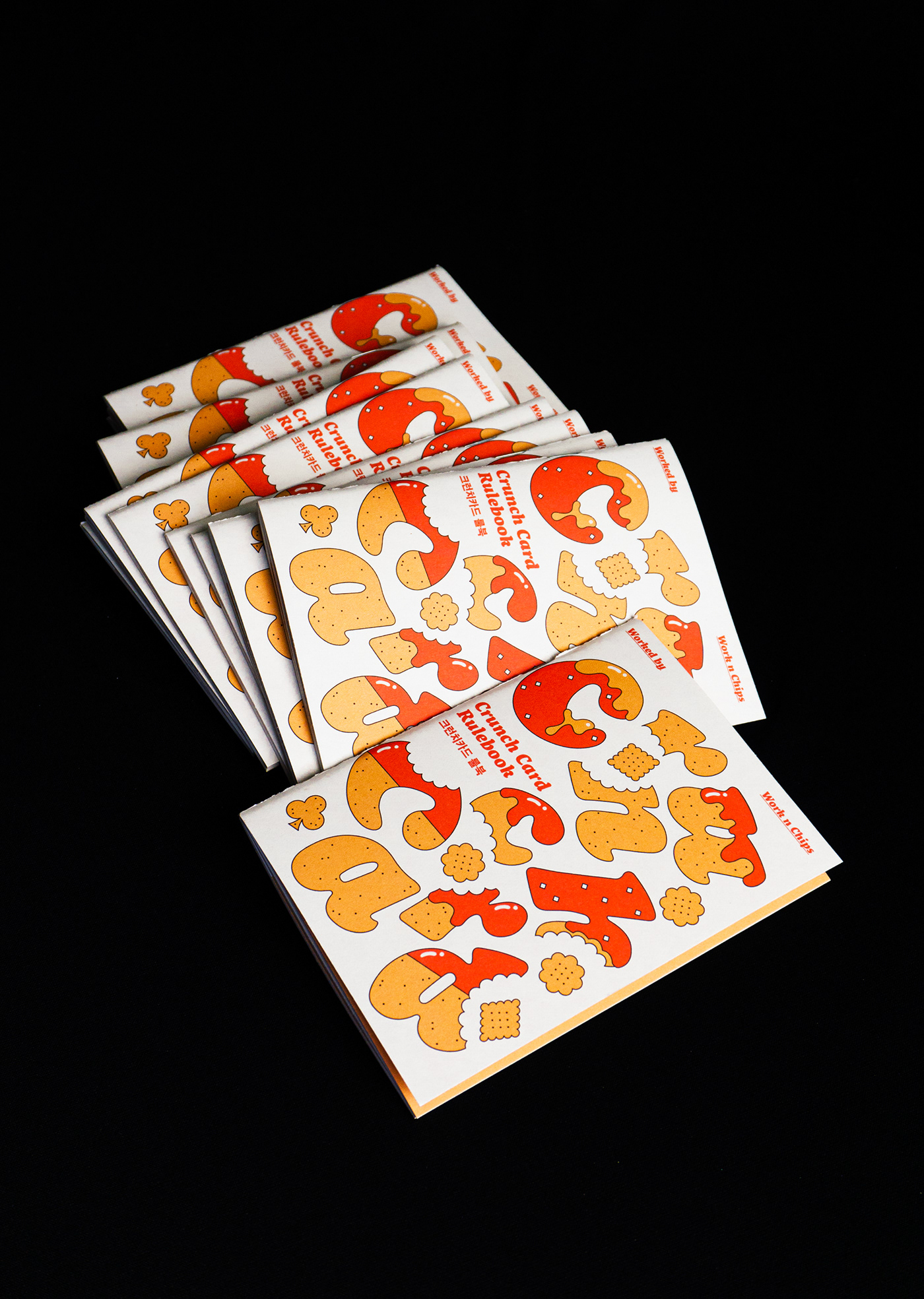 크런치 카드는 베이커리를 모티브로 기획 및 제작한 트럼프 카드 세트입니다. 기존 54장의 카드와 더불어 스페셜 티츄 카드 4장을 더해 트럼프 카드 컬렉터들의 니즈를 반영했습니다. 아기자기한 제과제빵 일러스트로 수집 가치를 높였습니다. 카드 외에도 10가지의 카드 게임을 소개하는 가이드북과 파우치, 스티커 등 다양한 구성으로 구매할 수 있습니다. 크라우드 펀딩을 통해 성공적으로 론칭했으며, 상상마당 홍대점 등 오프라인 판매도 진행했습니다.