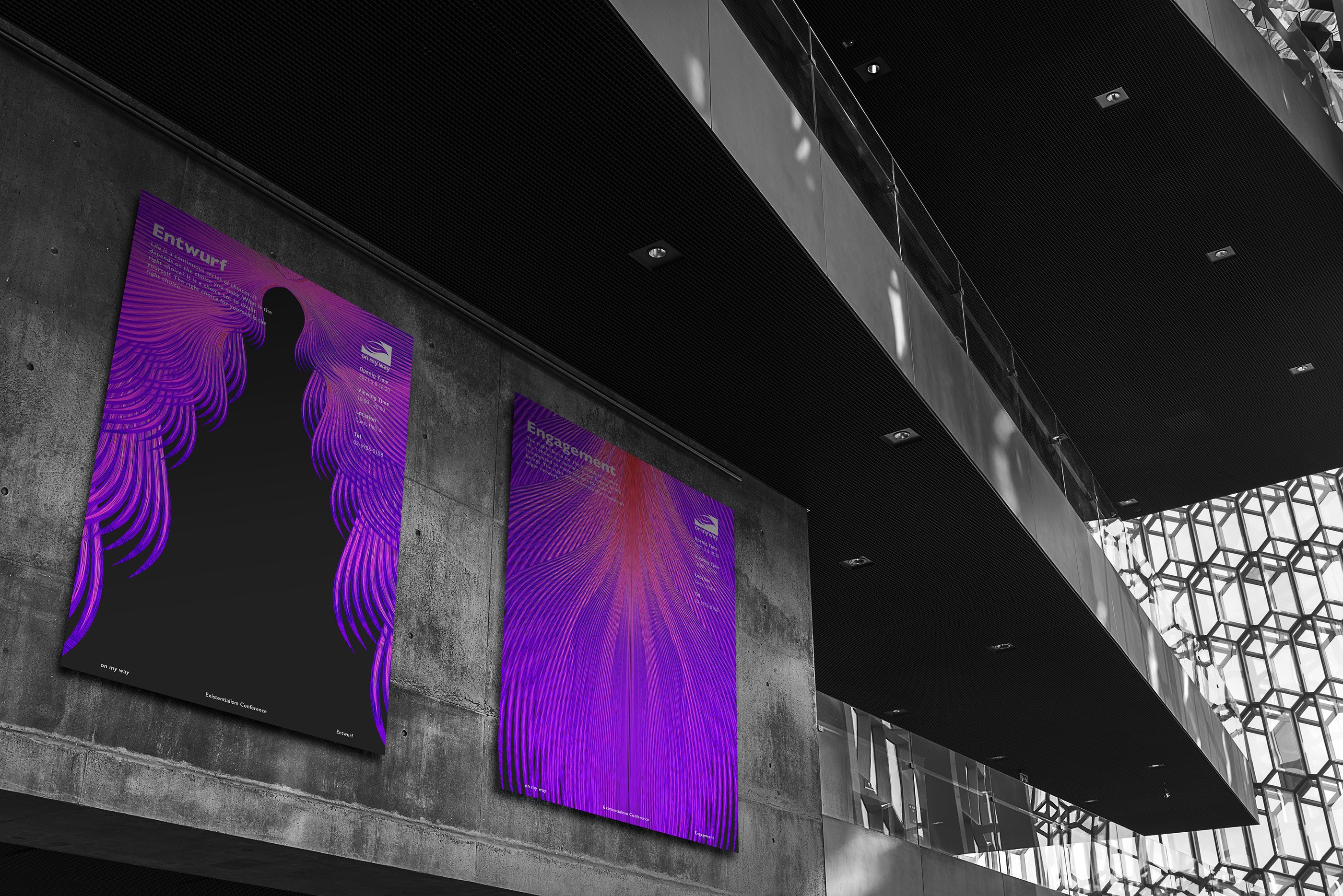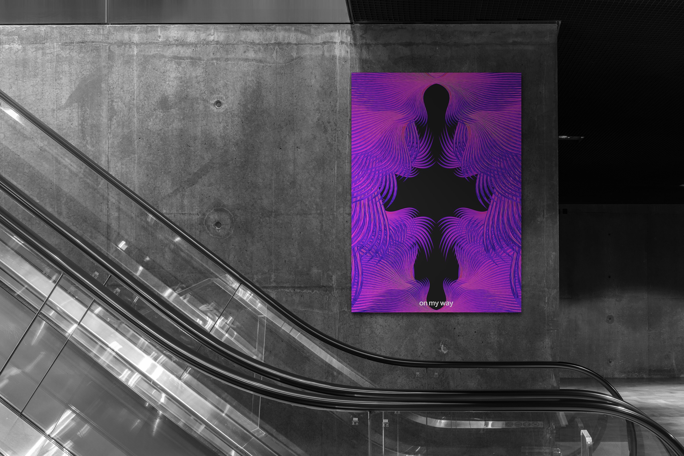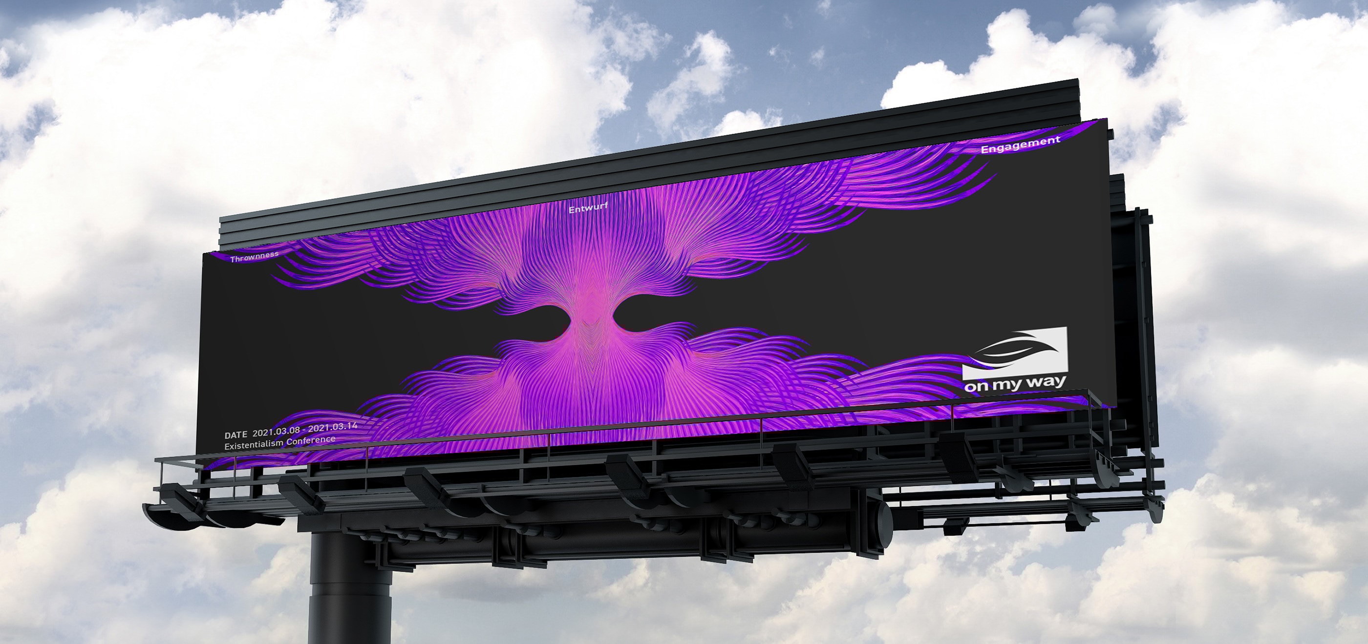 on my way 컨퍼런스는 현대인들의 불안을 해소시키기 위한 컨퍼런스입니다. 샤르트르의 실존주의 철학을 바탕으로 하고 있습니다. 그에 따르면 인간은 자유롭기에 불안하고, 자유의 책임을 두려워 합니다. 실존주의 철학을 3단계로 구성하여 시각화하고 해당 그래픽을 컨퍼런스 브랜딩에 녹여냈습니다. 1단계는 탄생, 2단계는 기투(수많은 선택), 3단계는 앙가주망(좋은 선택이 사회에 환원하는 광명)을 의미합니다. 해당 3단계는 위에 있는 포스터 3종으로 제작했습니다.